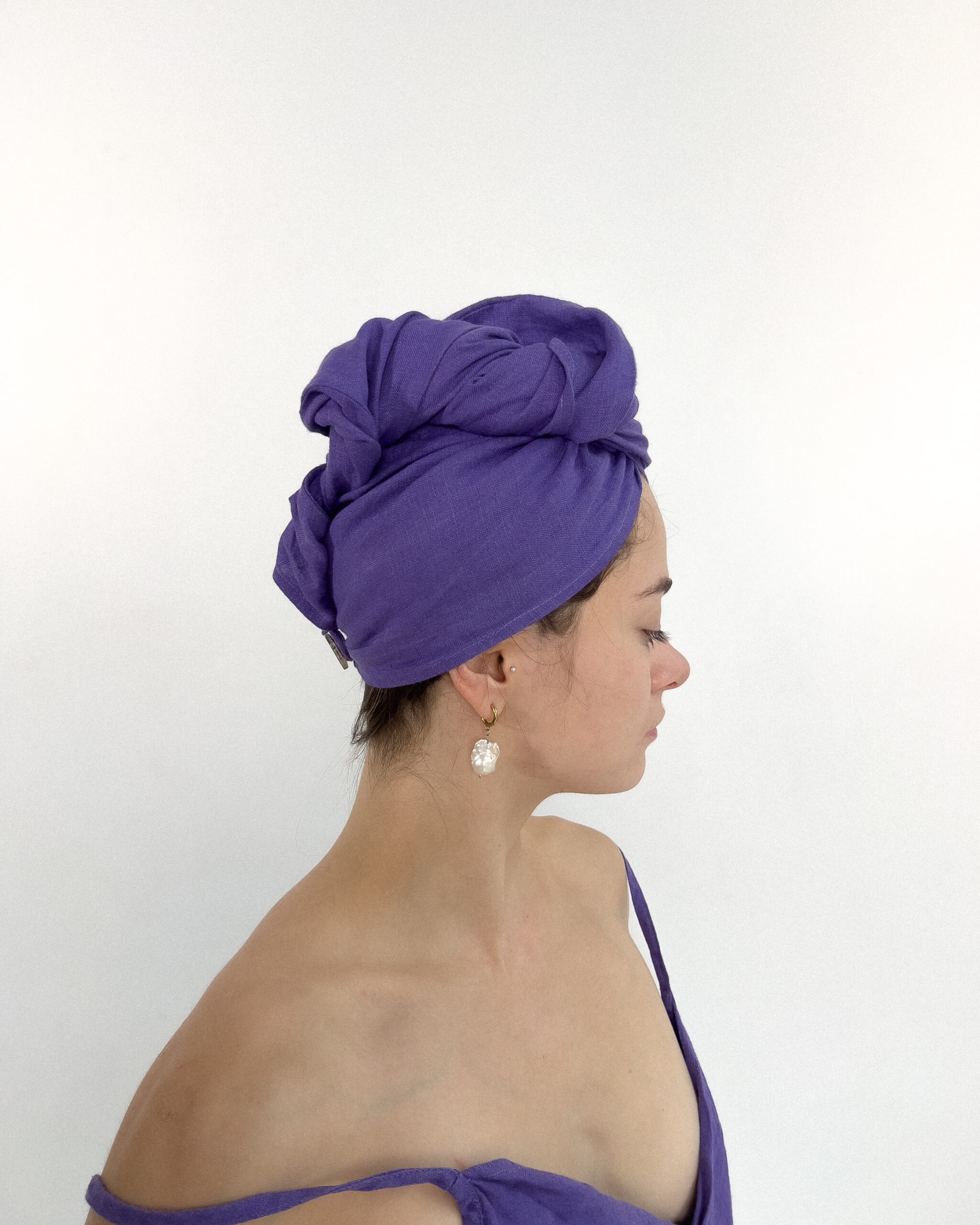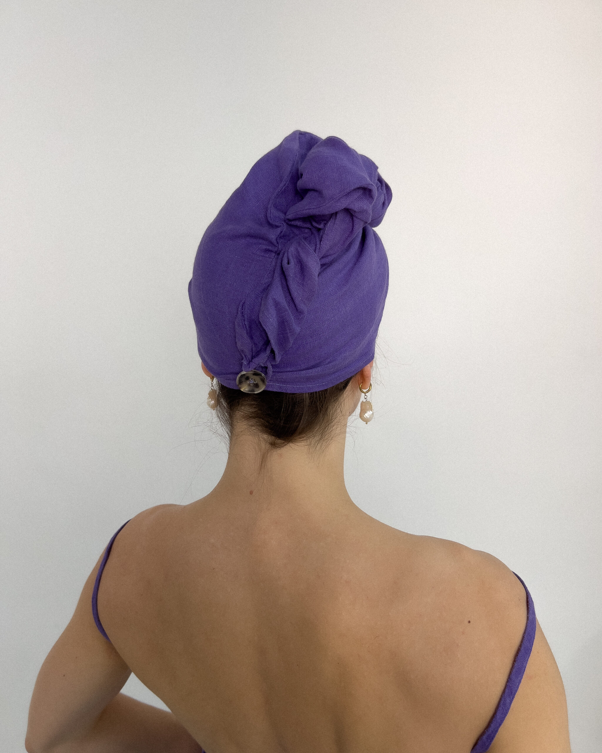 A matching hair wrap to go with my beautiful cover ups! Perfect for drying your hair after washing, protecting your head from the sauna hot air and to keep in your oils and masks while they do their magic. It’s also perfect for travel – takes up minimal space in your suitcase and allows you to quickly dry your hair of excess water. The linen turban features a practical loop and button closure made from wood, ensuring a secure fit. Linen is exceptionally absorbent and quick-drying. Unlike traditional towels, they do not harbour bacteria as easily and stay fresh longer.