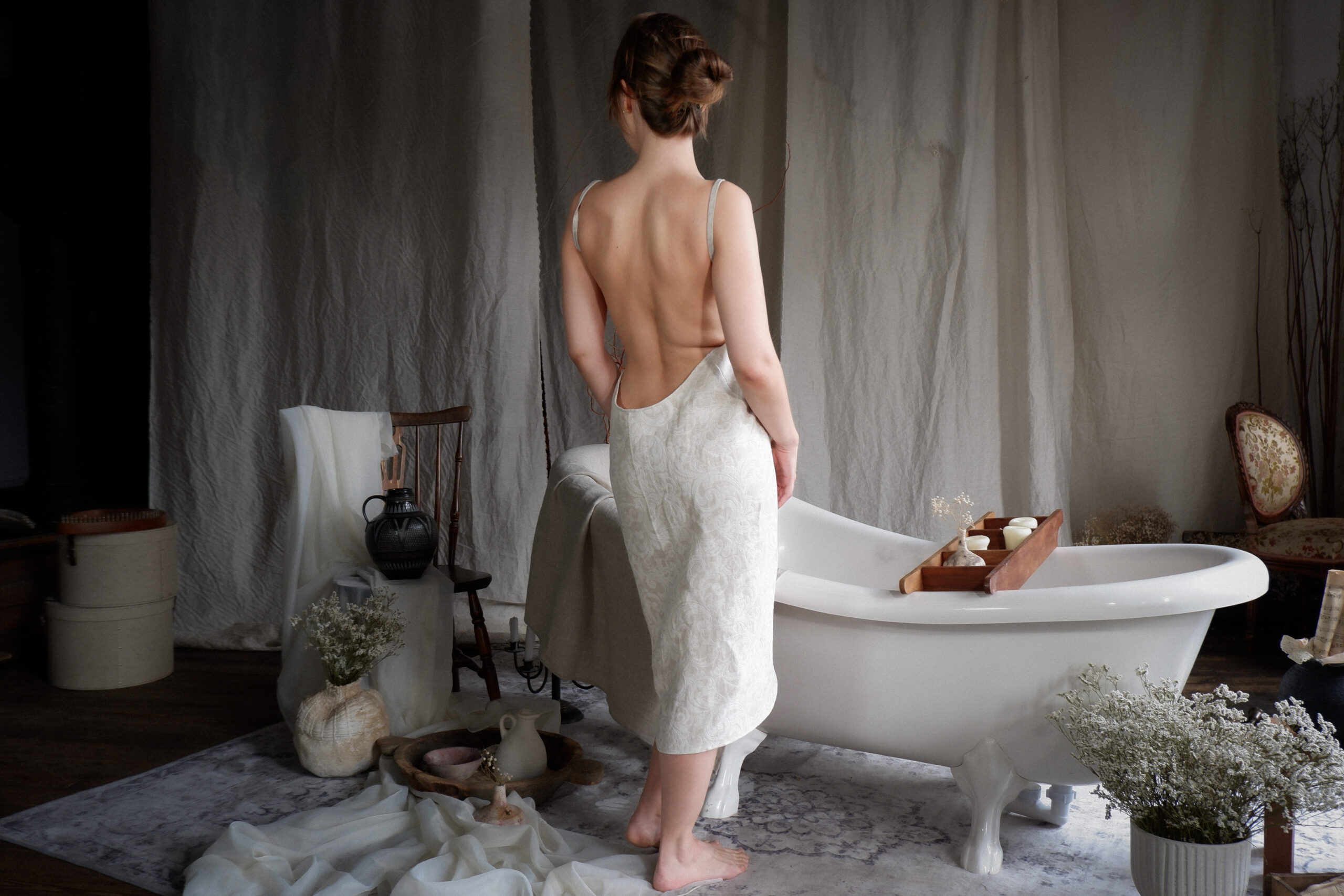 I’ve been looking for a beautiful yet functional cover up for years. Something that didn’t fall all the time, was easy to put on and take off, didn’t just look like a shapeless tube and was made from a beautiful organic fabric. Â Nothing satisfied my practical and artistic eye, so I finally decided to develop my own product. The wrap is absolutely perfect for your winter sauna sessions, weekend spa trips and summer beach days. It creates a beautiful hourglass shape and features a low open back. The fabric has a nice weight to it that makes it not see through even when wet. Linen is exceptionally absorbent and quick-drying. Unlike traditional towels, they do not harbour bacteria as easily and stay fresh longer.